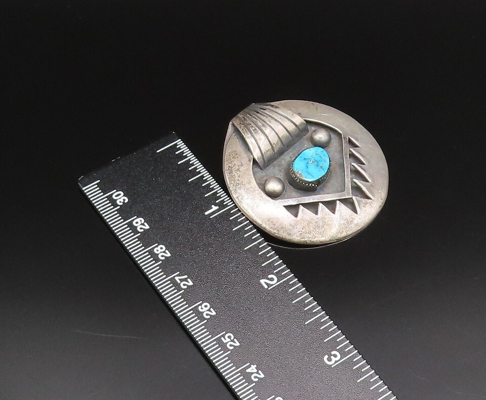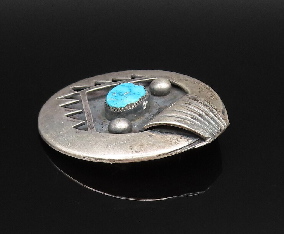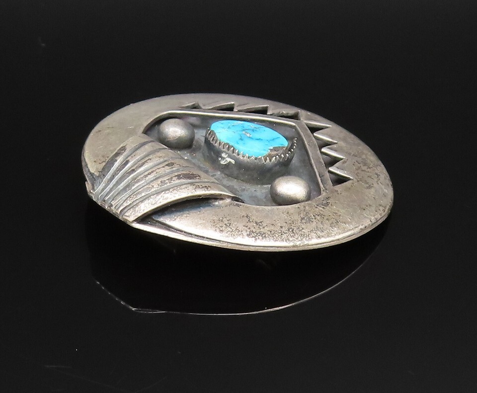 JH NAVAJO 925 Silver Vintage Carved Paw Motif Turquoise Brooch Pin BP9818