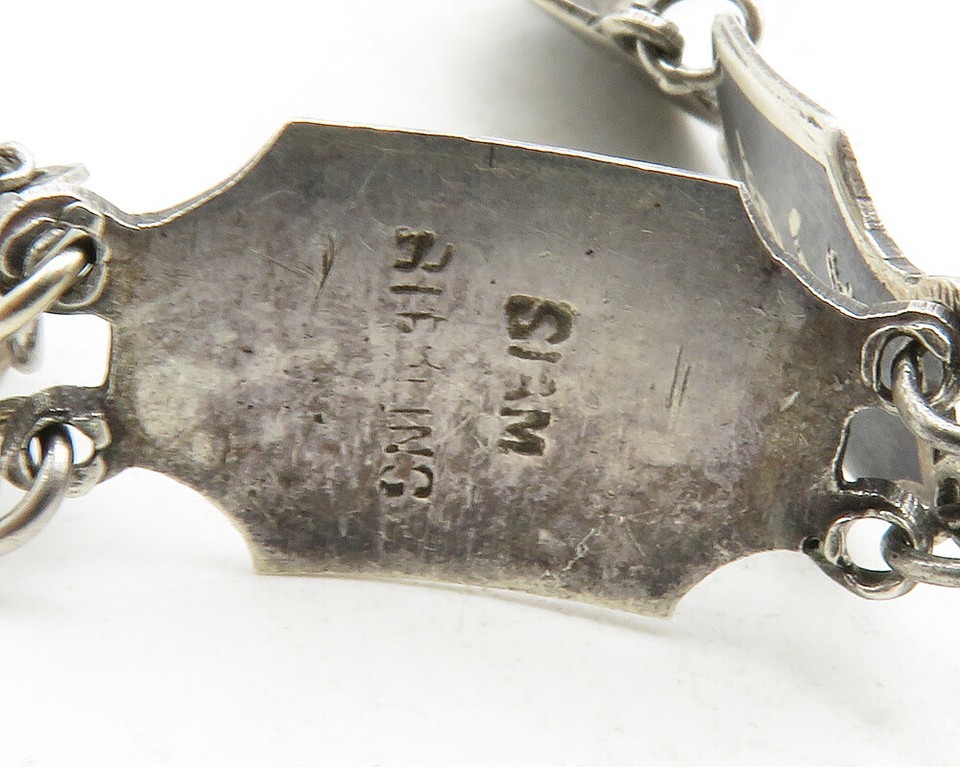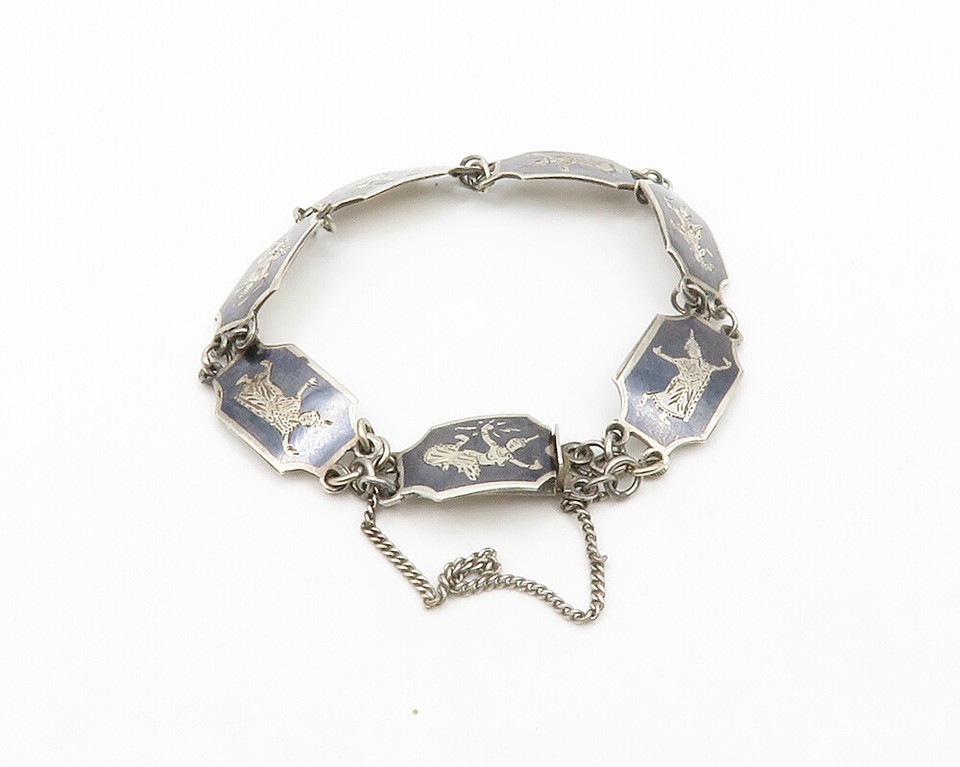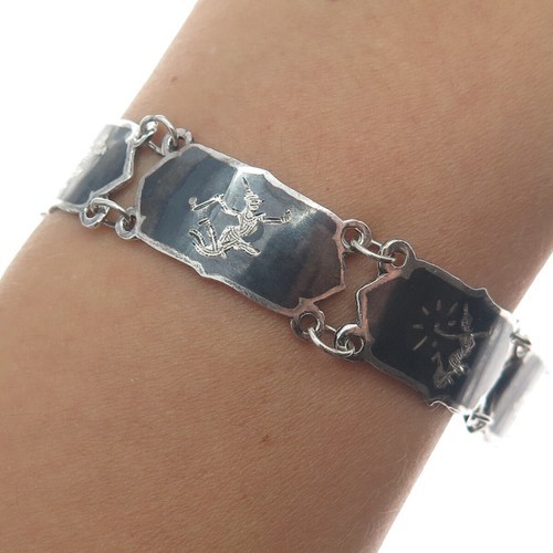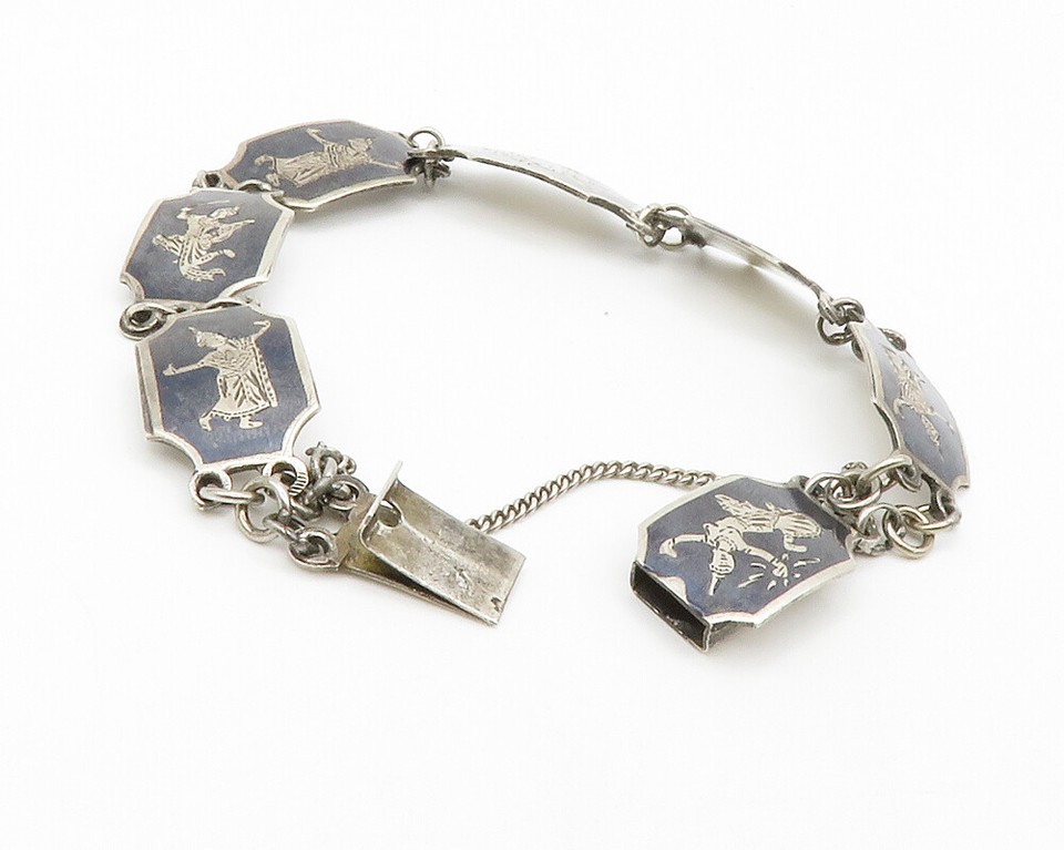 SIAM 925 Sterling Silver Vintage Enamel Niello Dancer Chain Bracelet BT4992