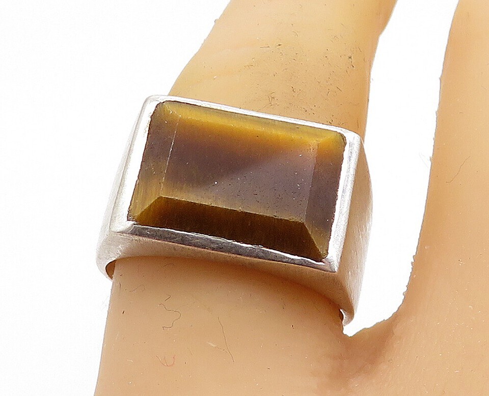 925 Sterling Silver Vintage Tiger's Eye Matte Square Band Ring Sz 8 RG7962