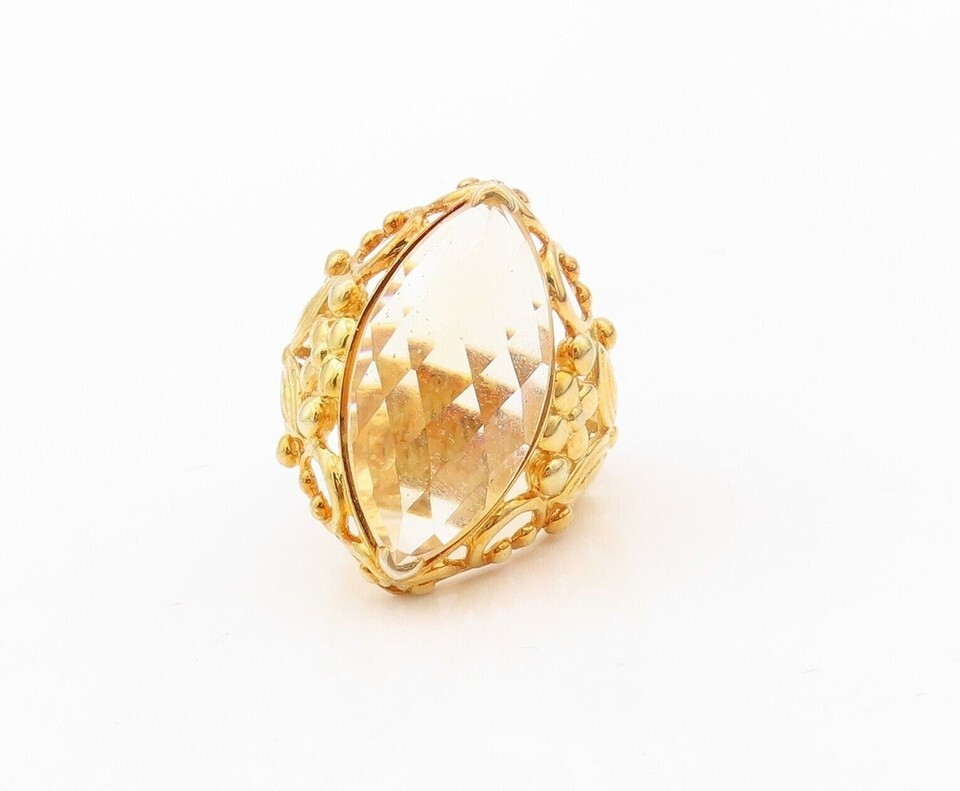 925 Sterling Silver Vintage Ring Gold Plated Marquise Cut Citrine Sz 7 RG30242