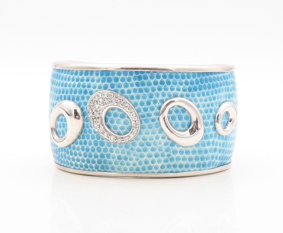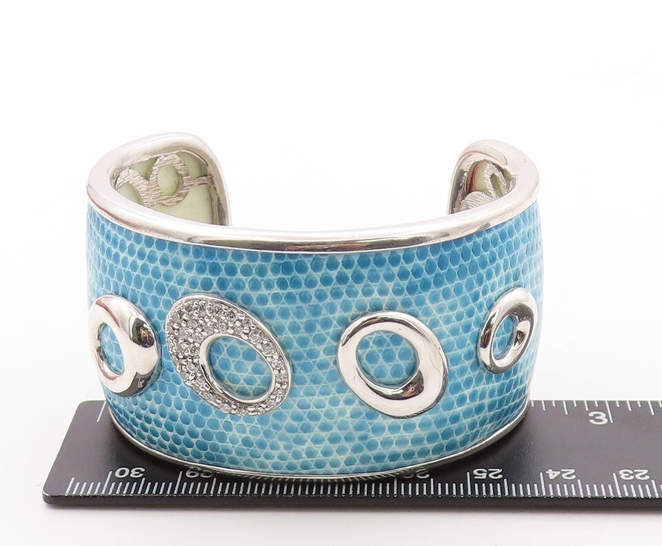 925 Sterling Silver Vintage Bracelet Enameled CZ Inlay Ovals Cuff BT10909