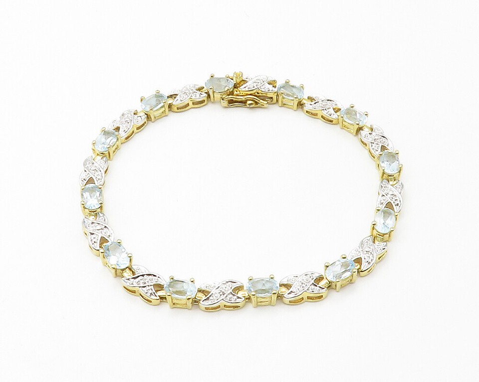 925 Sterling Silver Genuine Diamond & Blue Topaz Shiny Chain Bracelet BT5761
