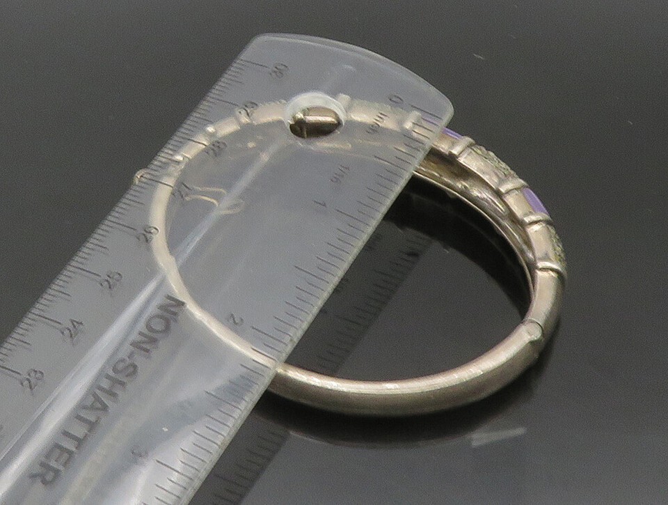 925 Sterling Silver Vintage Amethyst & Marcasite Bangle Bracelet BT9282