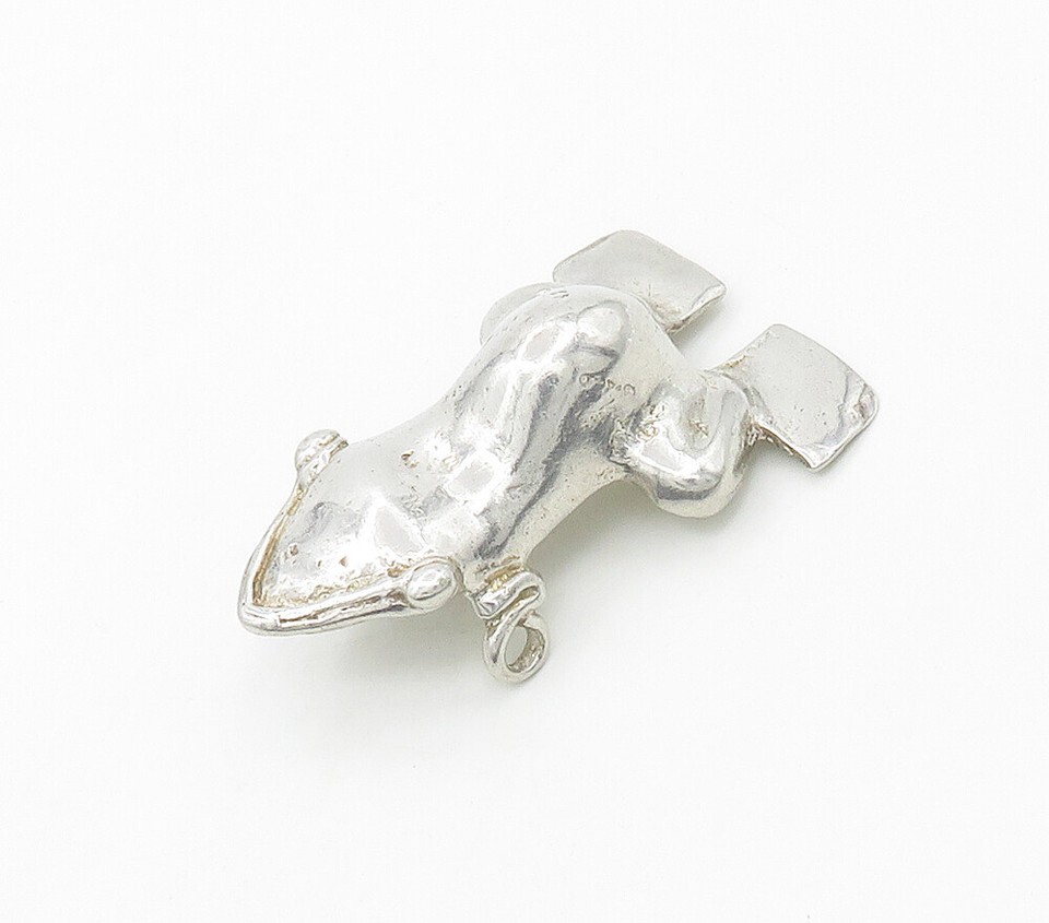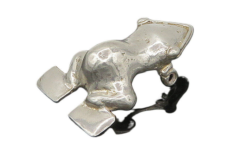 925 Sterling Silver Vintage Modernist Frog Animal Motif Pendant PT12107