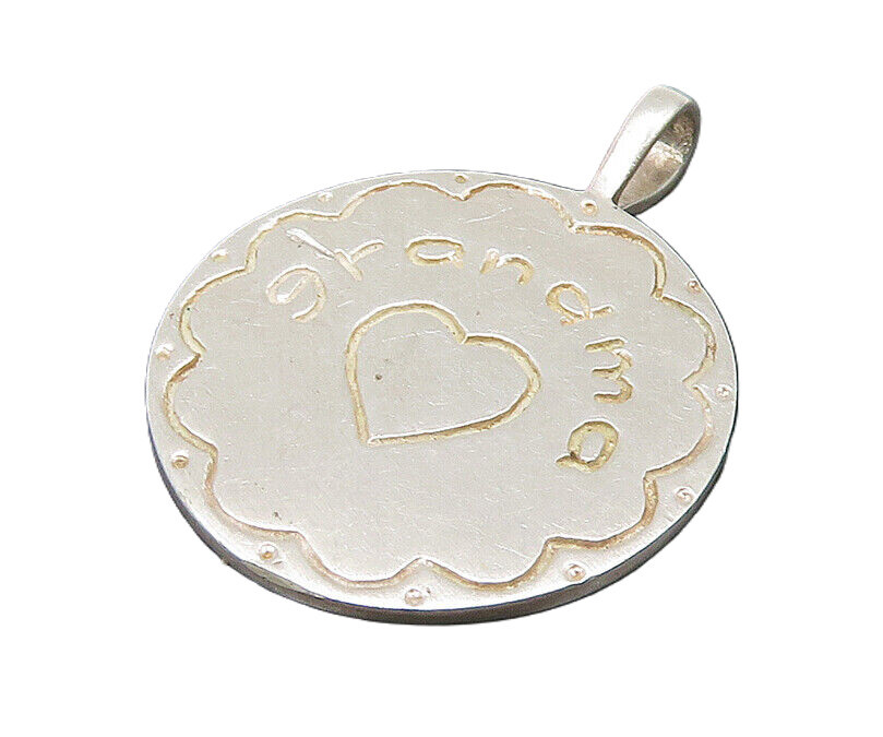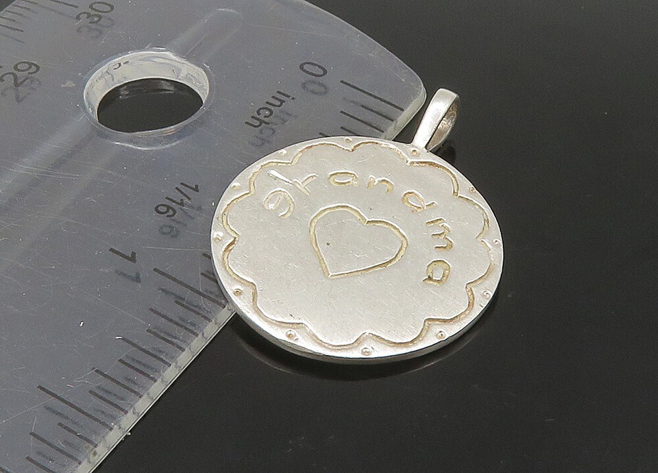 925 Sterling Silver Vintage Grandma Love Heart Round Pendant PT18591