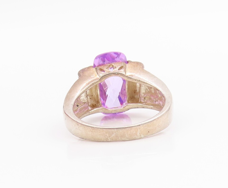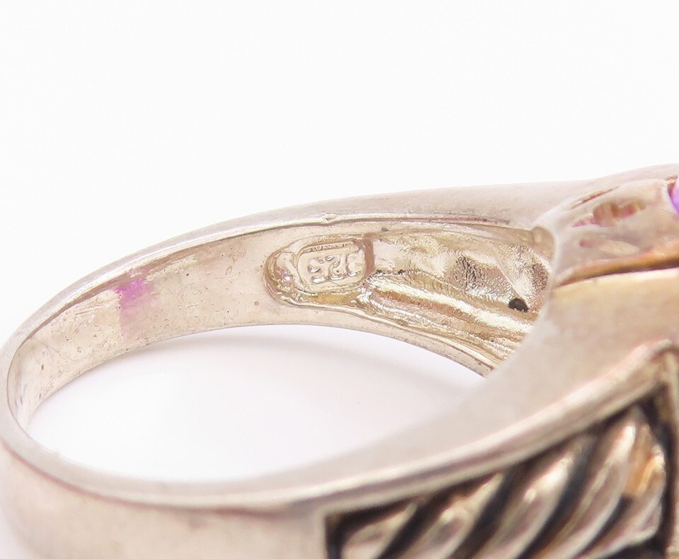925 Sterling Silver Vintage Ring Rectangle Cut Amethyst Roped Sz 8 RG33198