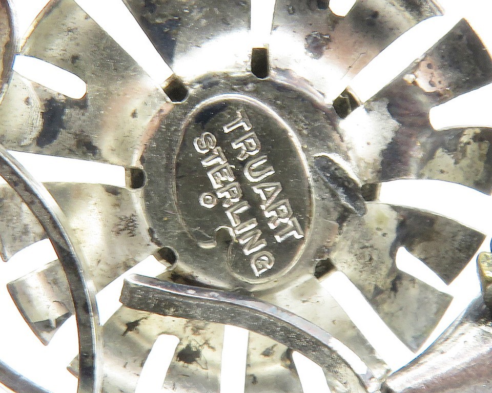 TRUART 925 Sterling Silver Vintage Red Topaz Flower Motif Brooch Pin BP5556