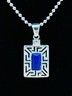 925 Sterling Silver Vintage Lapis Lazuli Square Pattern Pendant PT19185