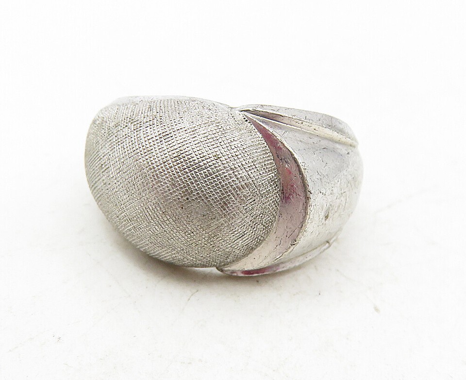 CLARK & COOMBS 925 Silver Vintage Shiny Textured Dome Band Ring Sz 6 RG9392