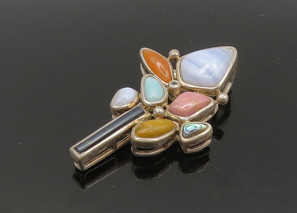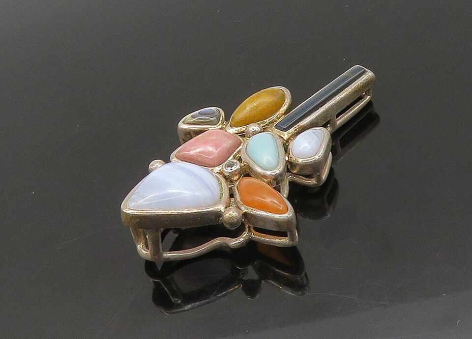WHITNEY KELLY 925 Silver Vintage Agate Onyx & Multi Stone Pendant PT16708