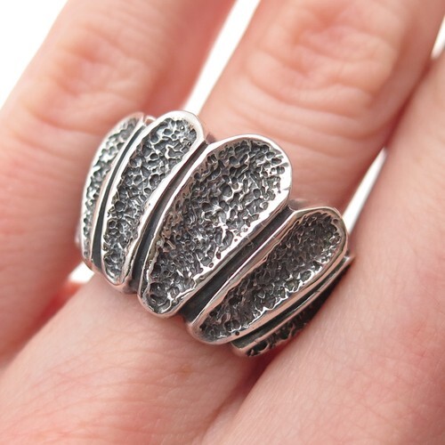 MEXICO 925 Silver Vintage Heavy Modernist Sculpted Band Ring Sz 7 RG19885