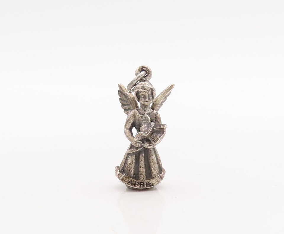925 Sterling Silver Vintage Pendant HAYWARD April Fairy Angel Charm PT23637