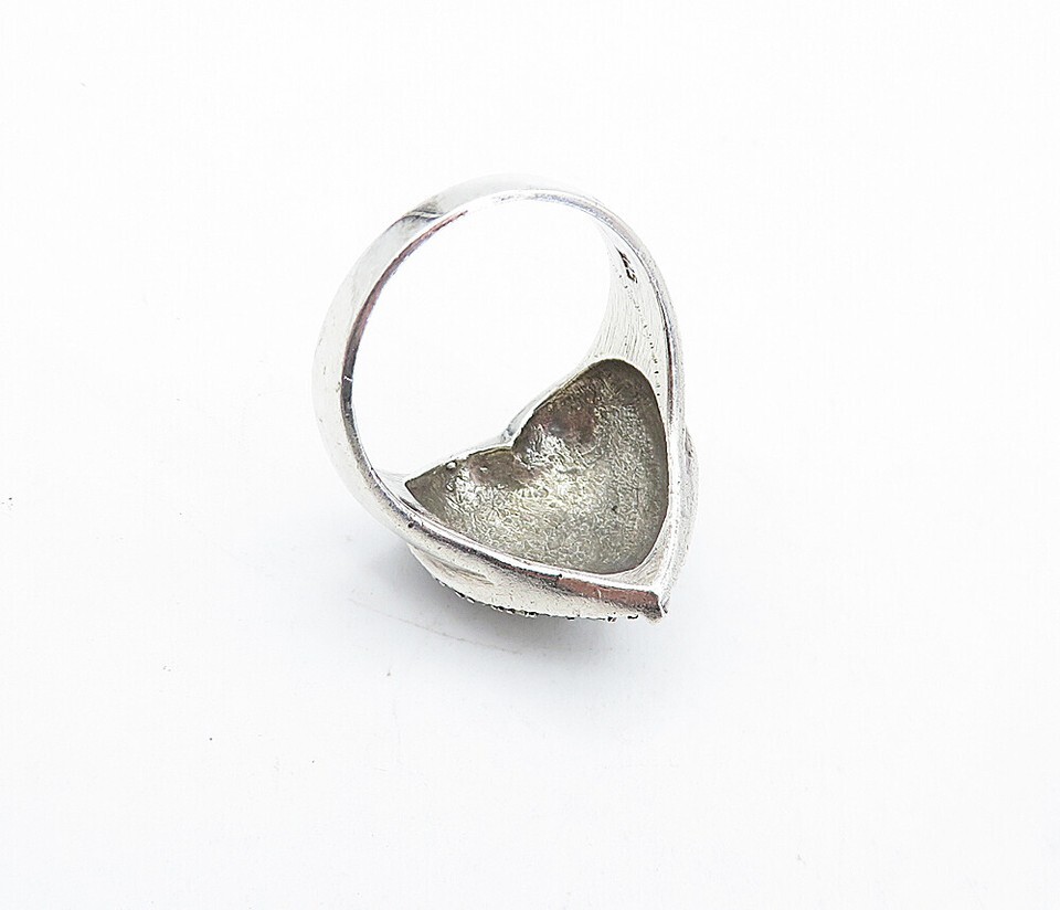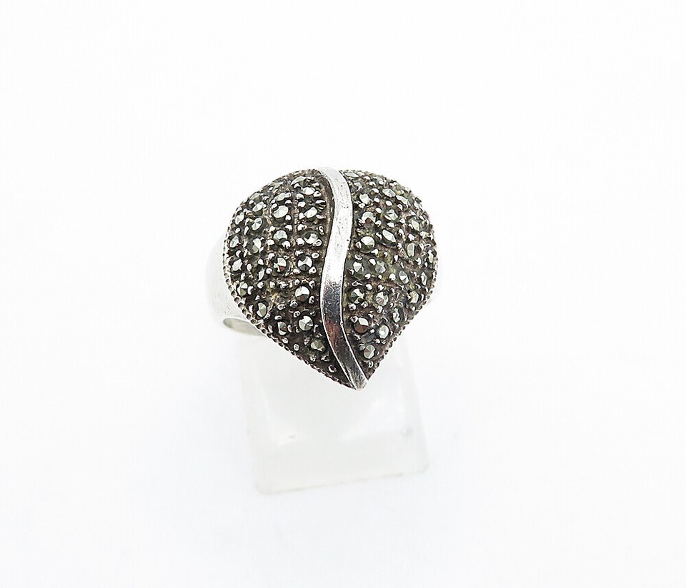 925 Sterling Silver Vintage Marcasite Love Heart Cocktail Ring Sz 7.5 RG5178