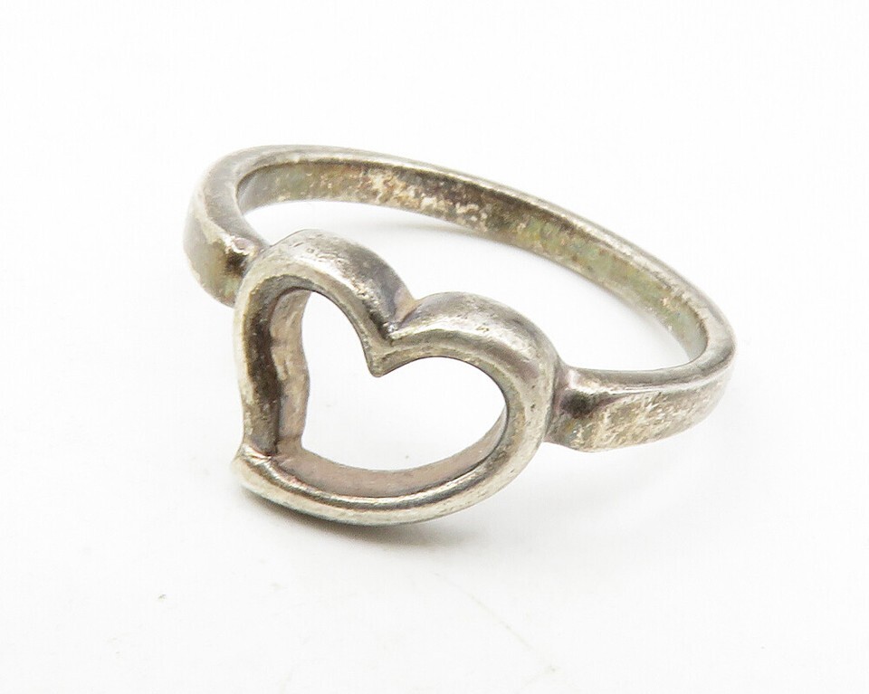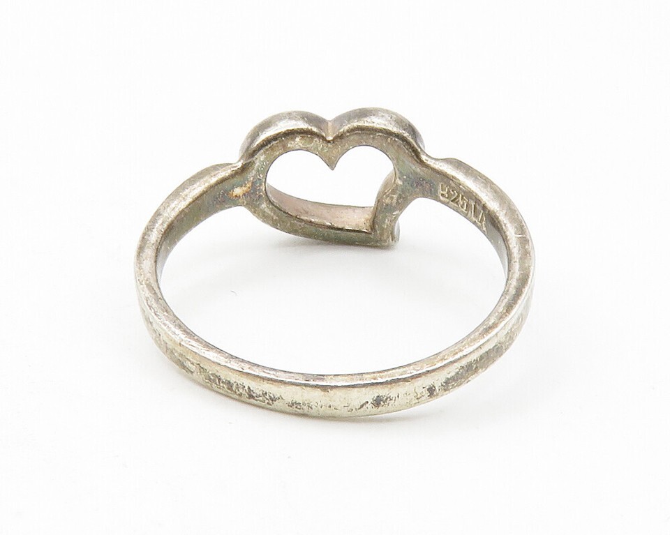 925 Sterling Silver Vintage Petite Open Love Heart Band Ring Sz 6.5 RG12643