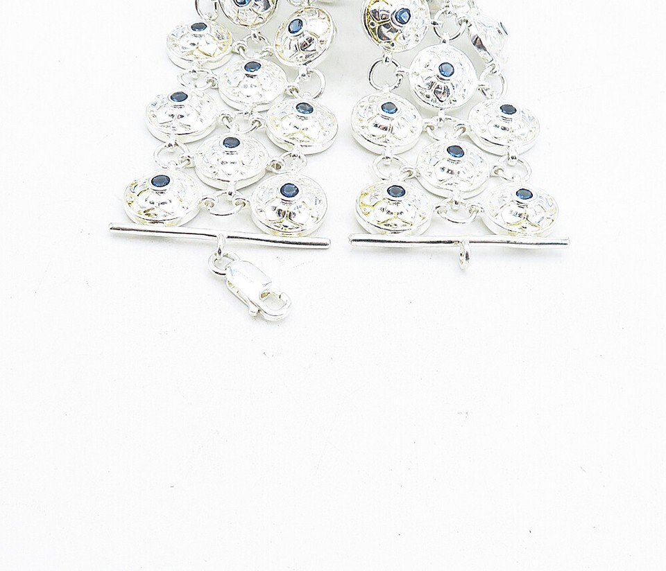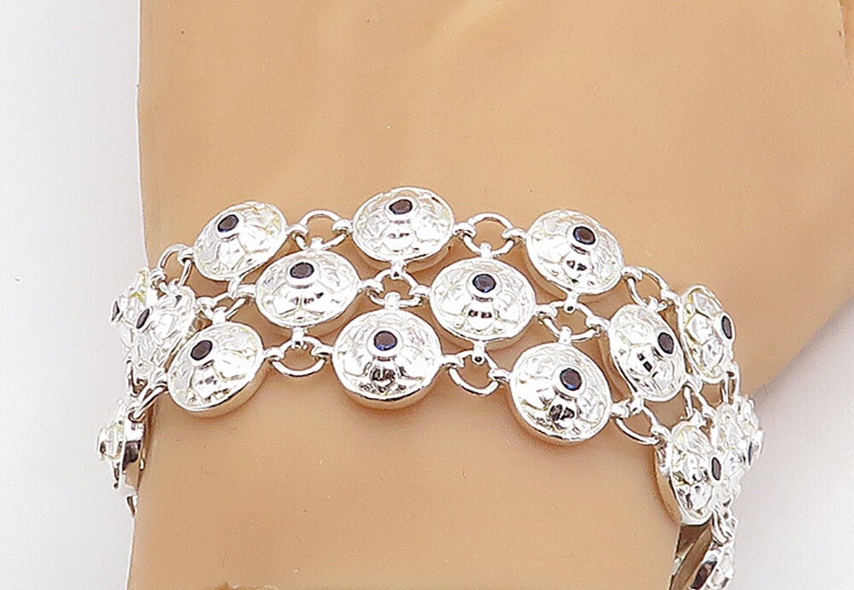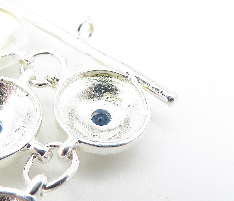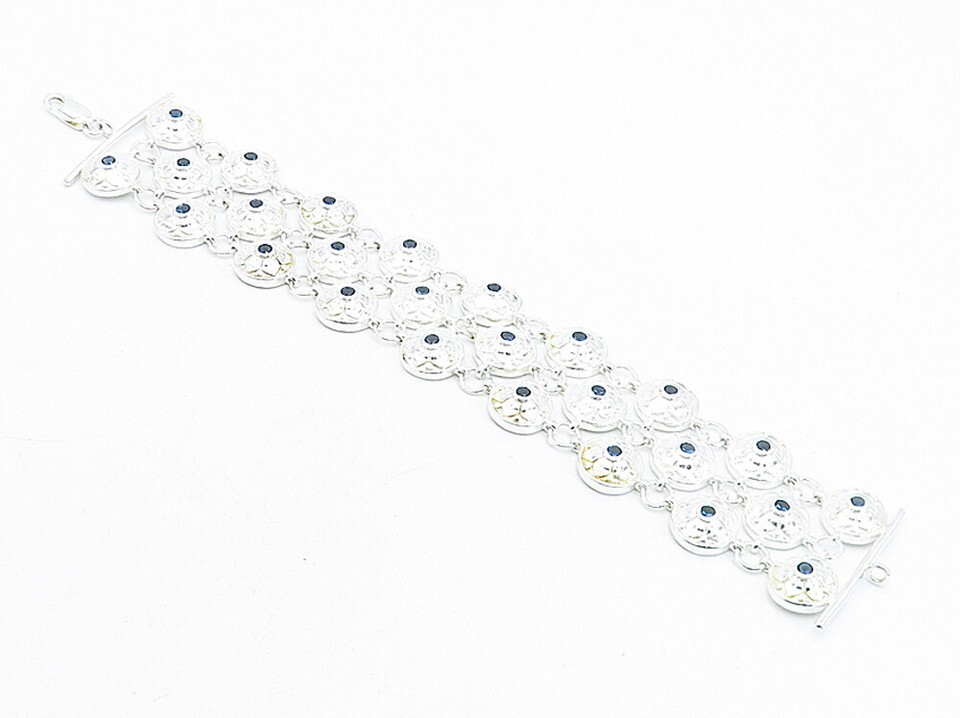 925 Sterling Silver Blue Topaz Shiny Floral Dome Link Chain Bracelet BT1618