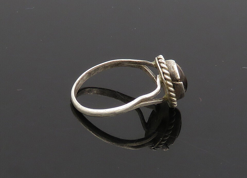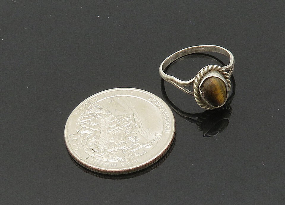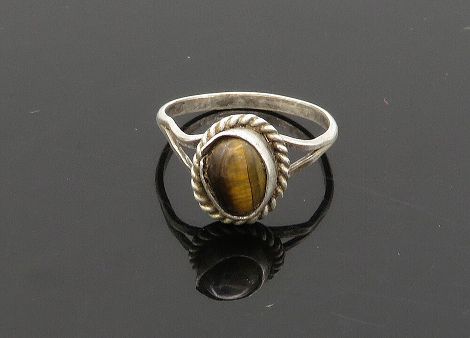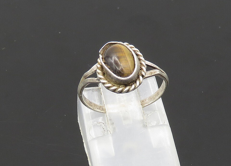 925 Silver Vintage Cabochon Tiger's Eye Petite Band Ring Sz 4.5 RG20939