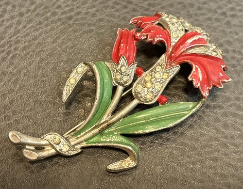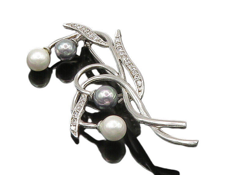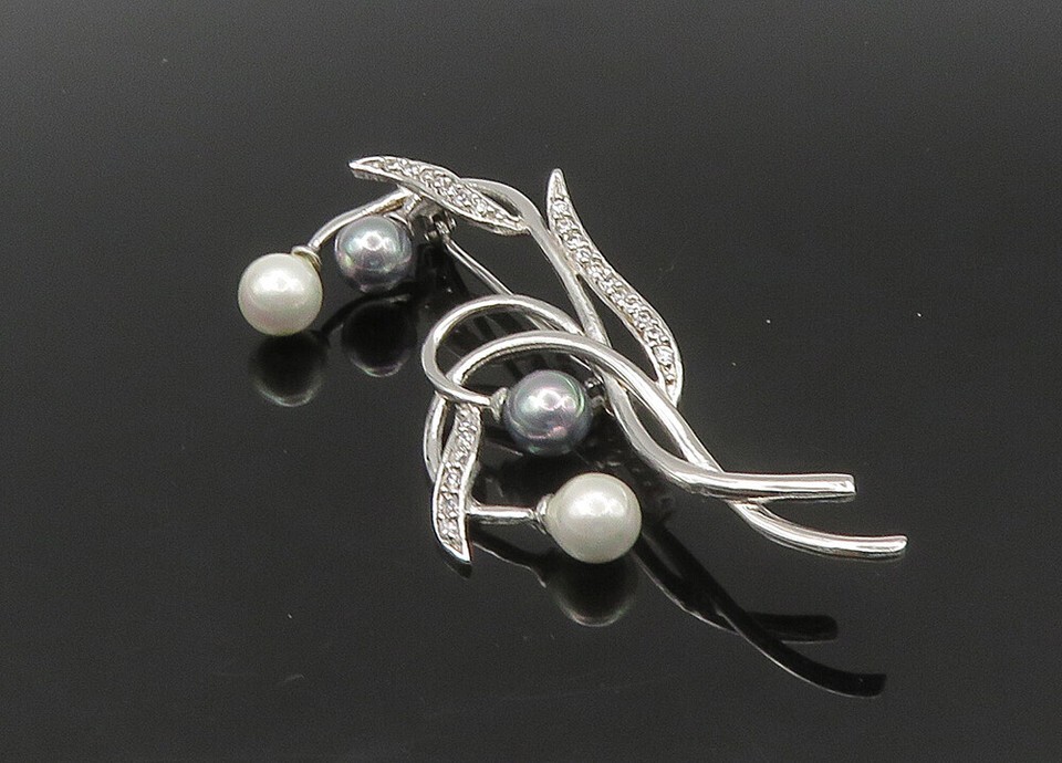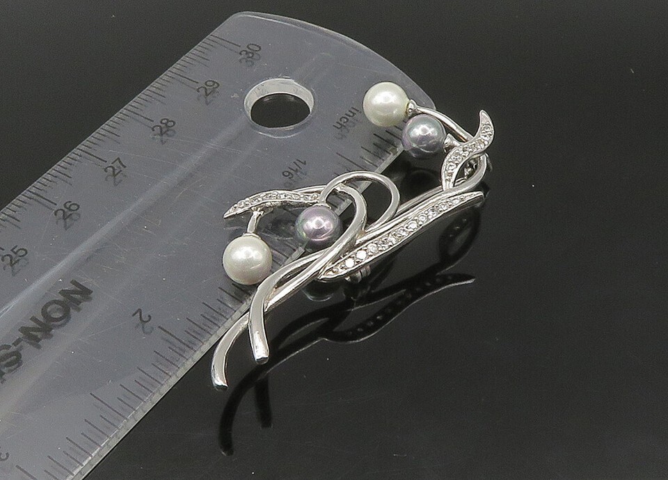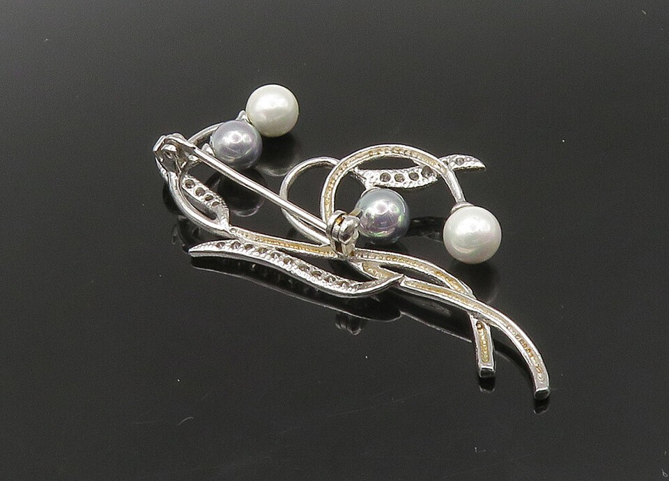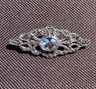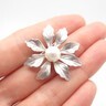925 Silver Vintage Blue & White Pearls & Topaz Floral Brooch Pin BP8880