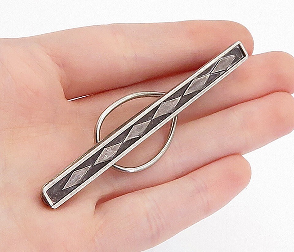 925 Sterling Silver Vintage Antique Diamond Shaped Pattern Tie Clip TR1108