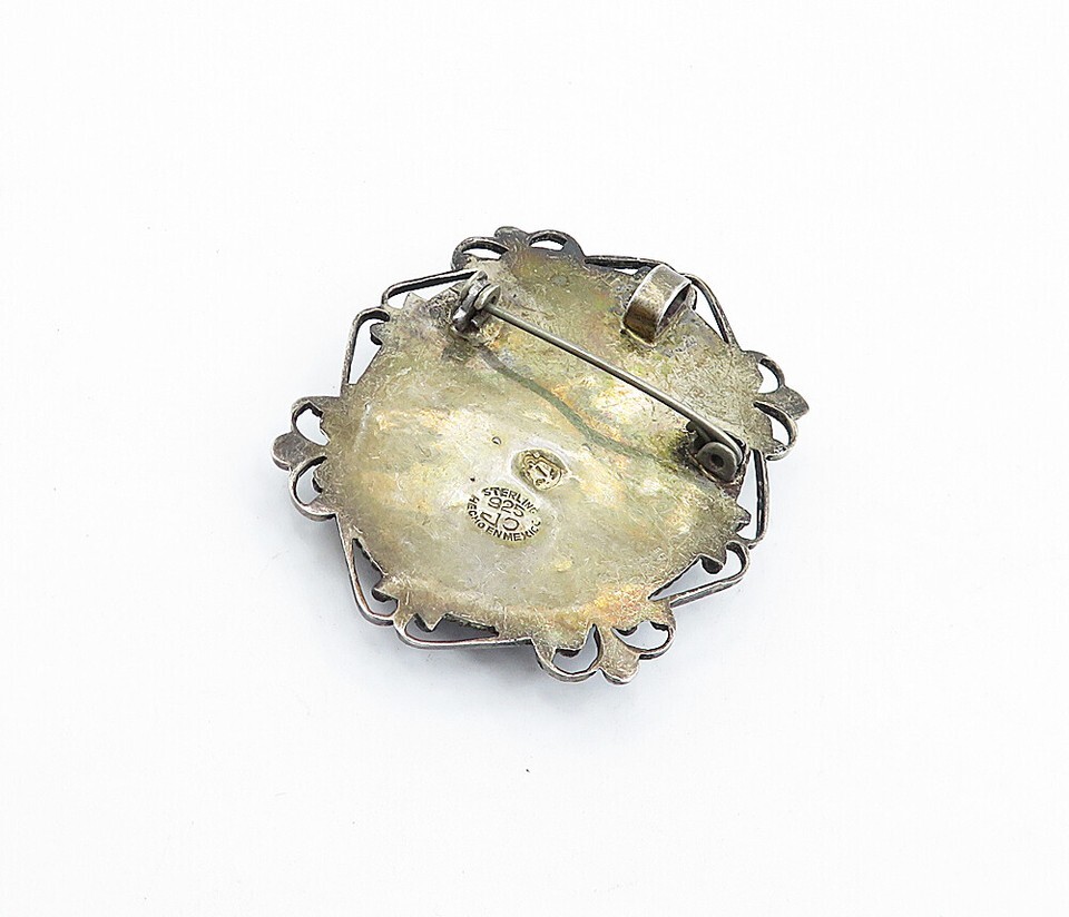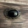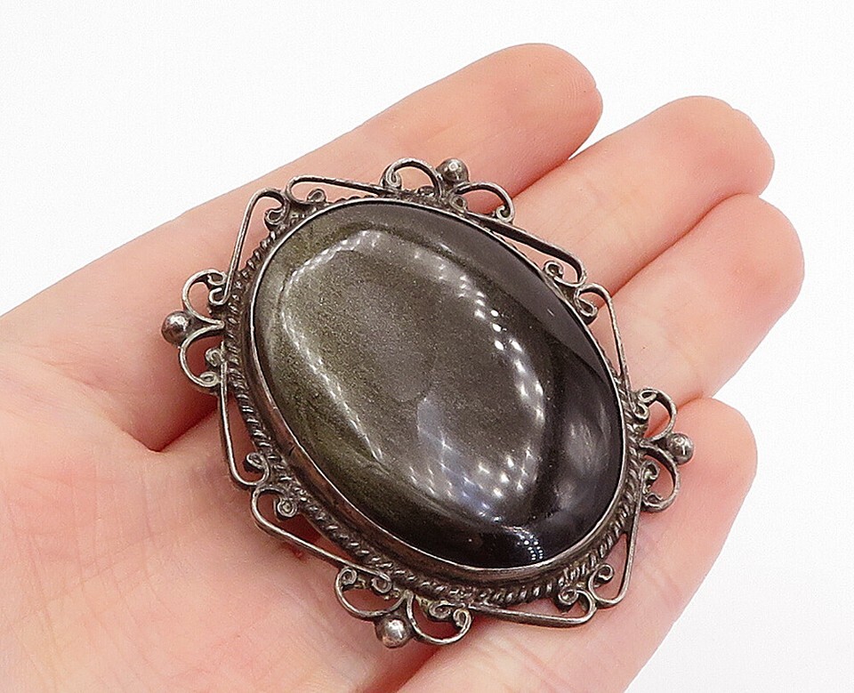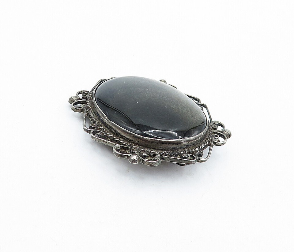 MEXICO 925 Sterling Silver Vintage Black Onyx Baroque Swirl Brooch Pin BP1686
