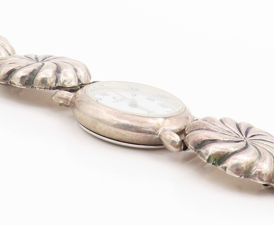 925 Sterling Silver Vintage Watch NAVAJO Dark Tone Floral Etched Band TR3860