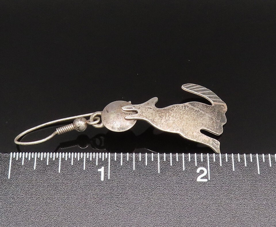 F. RAMONE NAVAJO 925 Silver Vintage Howling Wolf & Moon Earrings EG11904