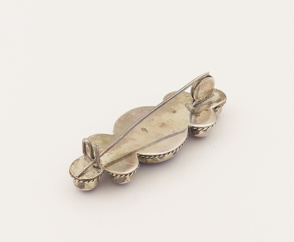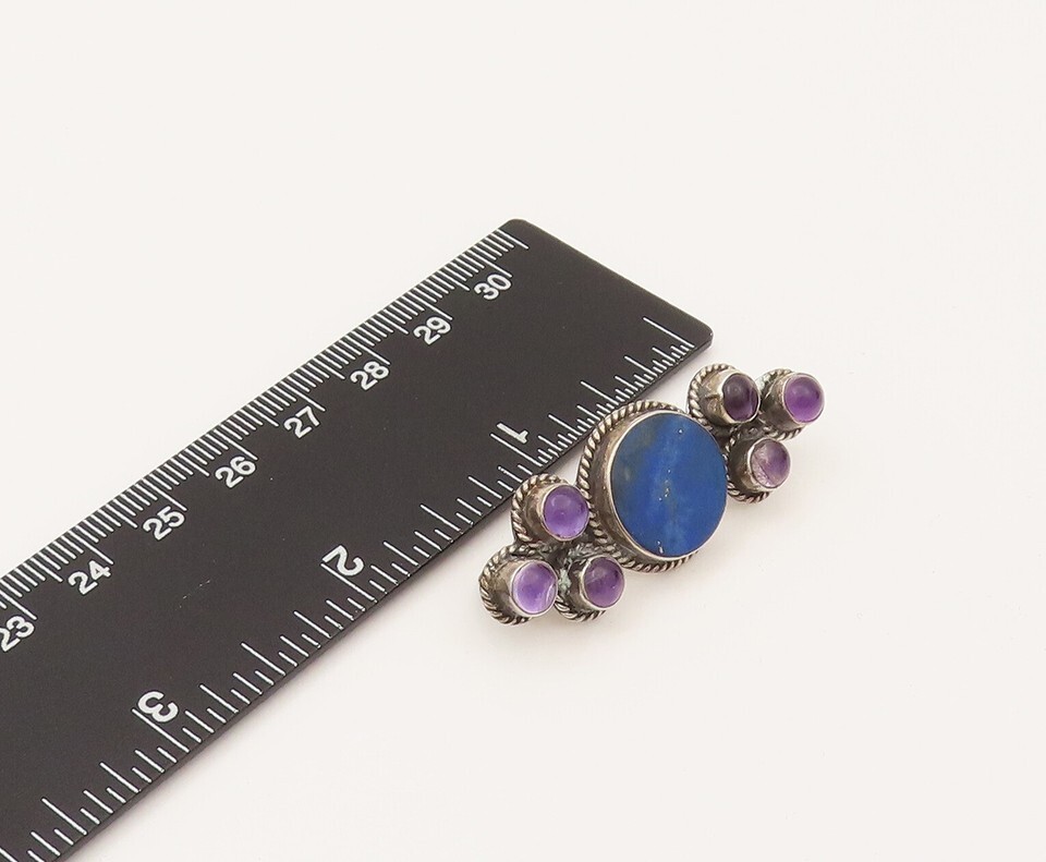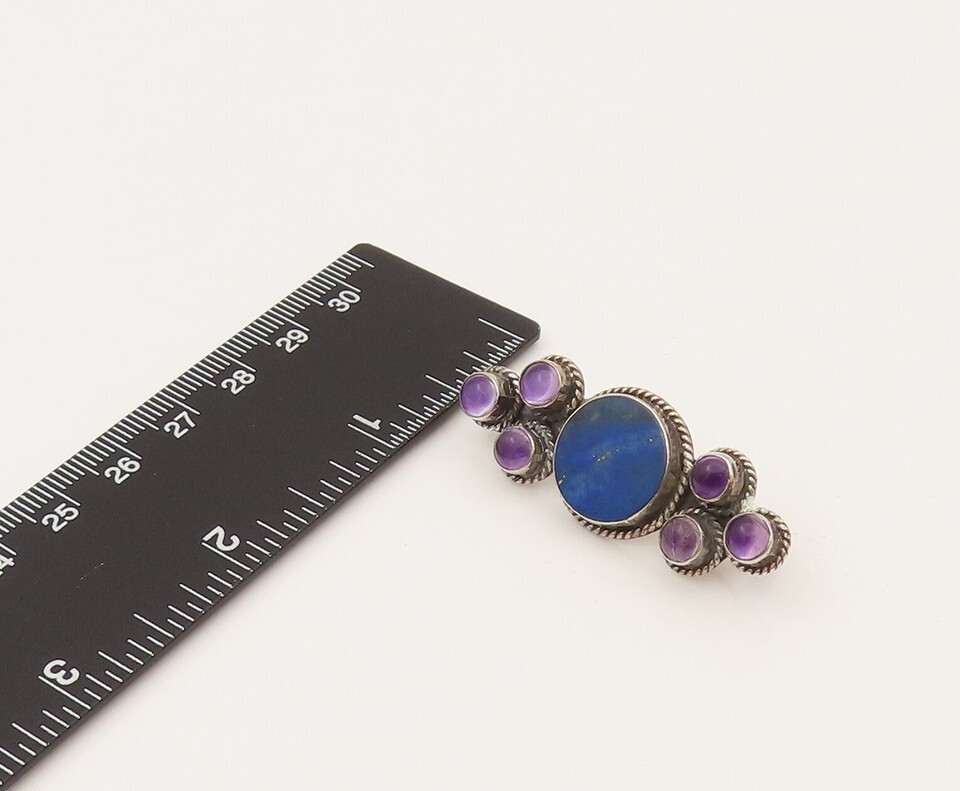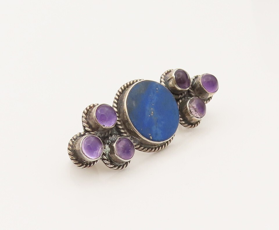 925 Silver Vintage Lapis Lazuli & Cabochon Amethyst Brooch Pin BP10215