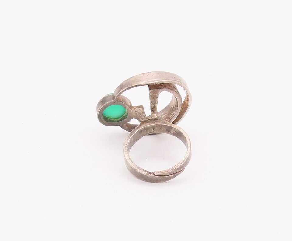 925 Sterling Silver Vintage Ring Cabochon Jade European Design Sz 7 RG28016