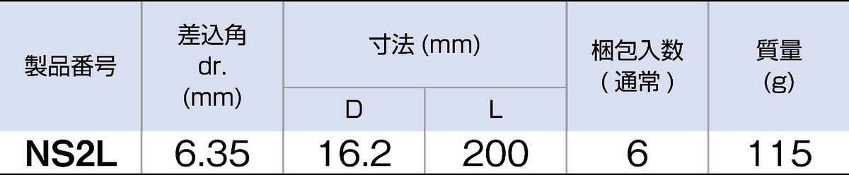 Tone NS2L 1/4" drive Long 200mm breaker bar | Made in Japan