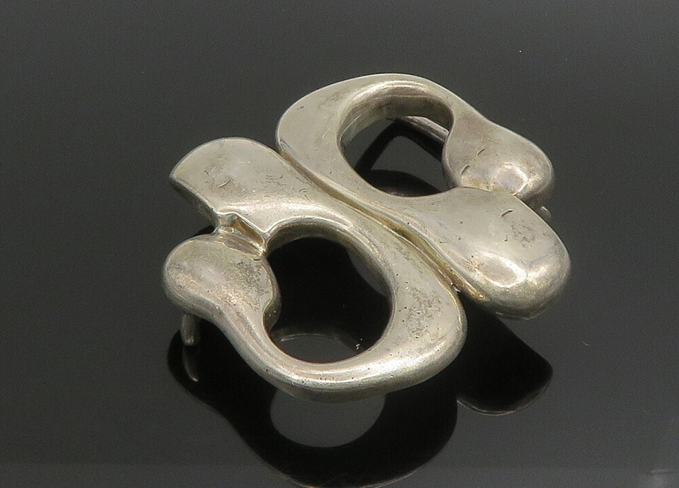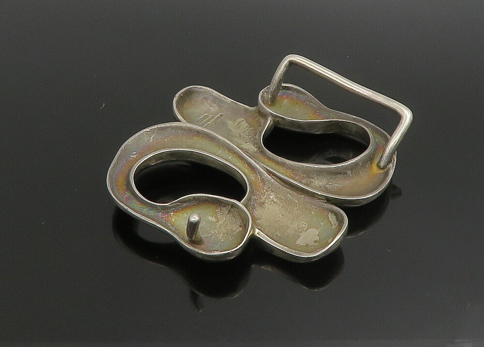 925 Sterling Silver Vintage Shiny Heavy Modernist Belt Buckle TR3178