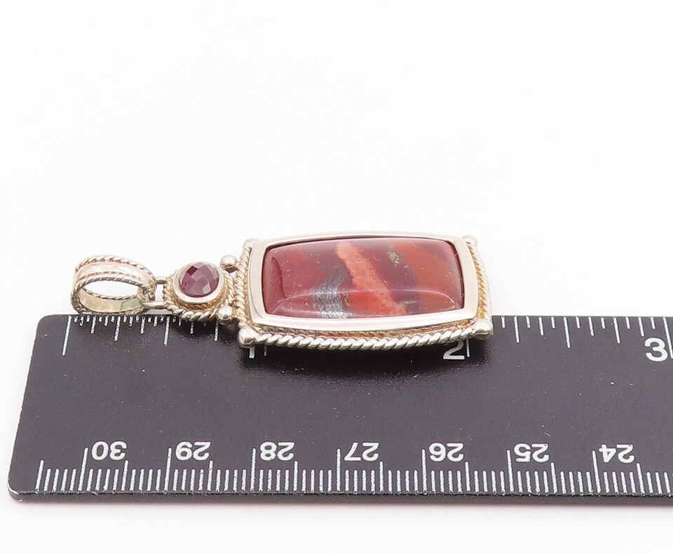 925 Sterling Silver Vintage Pendant WHITNEY KELLY Jasper & Garnet Charm PT25675
