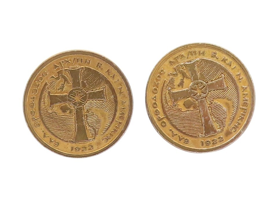 925 Sterling Silver Vintage Cufflinks 1922 Byzantine Cross Church Coins TR4149