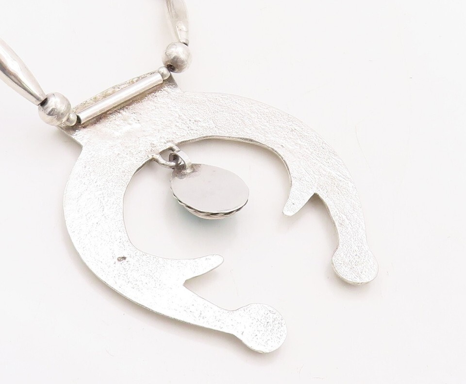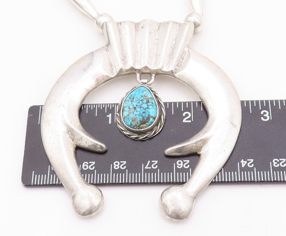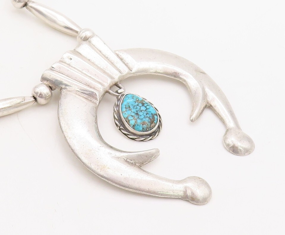 925 Sterling Silver Vintage Necklace NAVAJO ZUNI Large Carved Turquoise NE4366