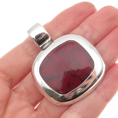 DESIGNER 925 Sterling Silver Vintage Cabochon Cut Jasper Pendant PT17350