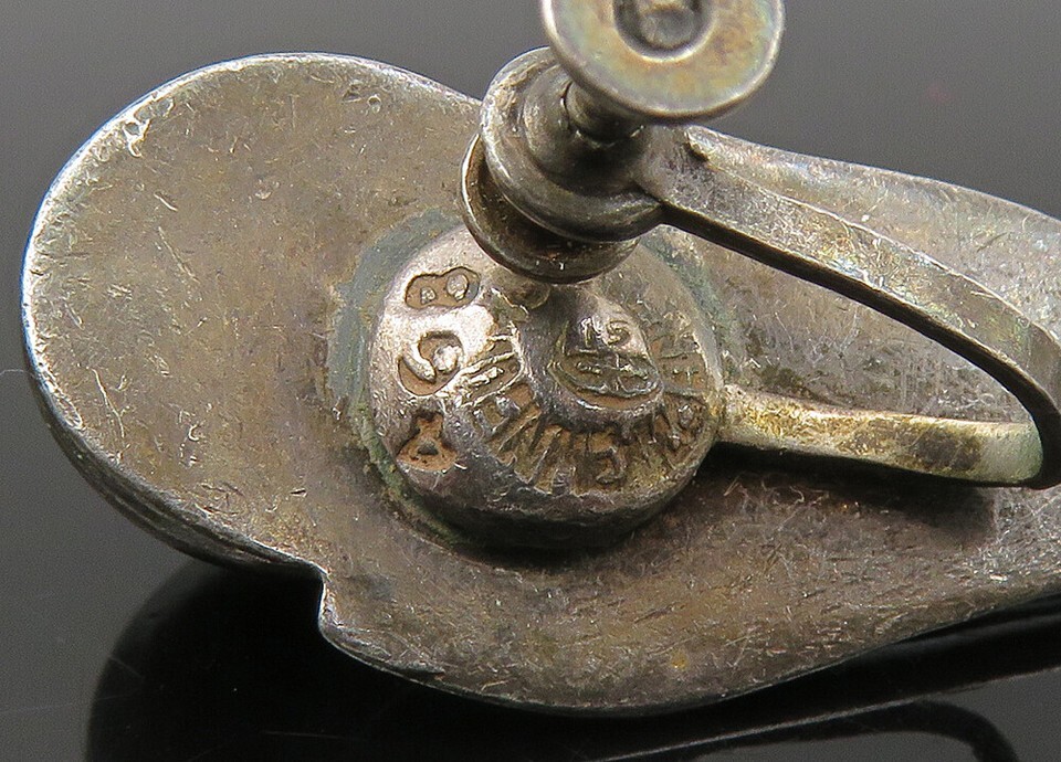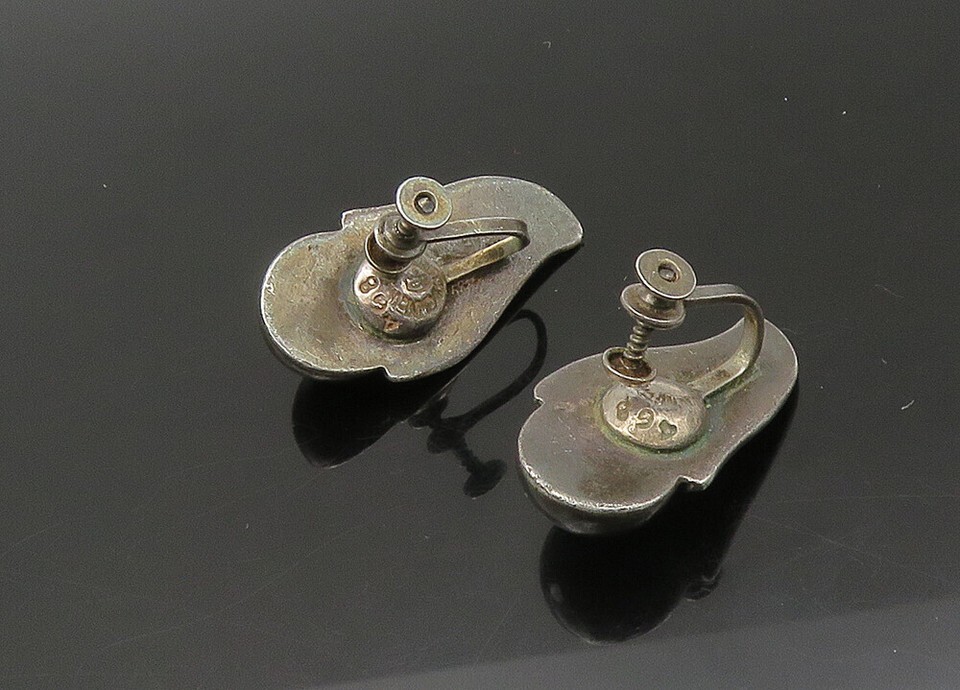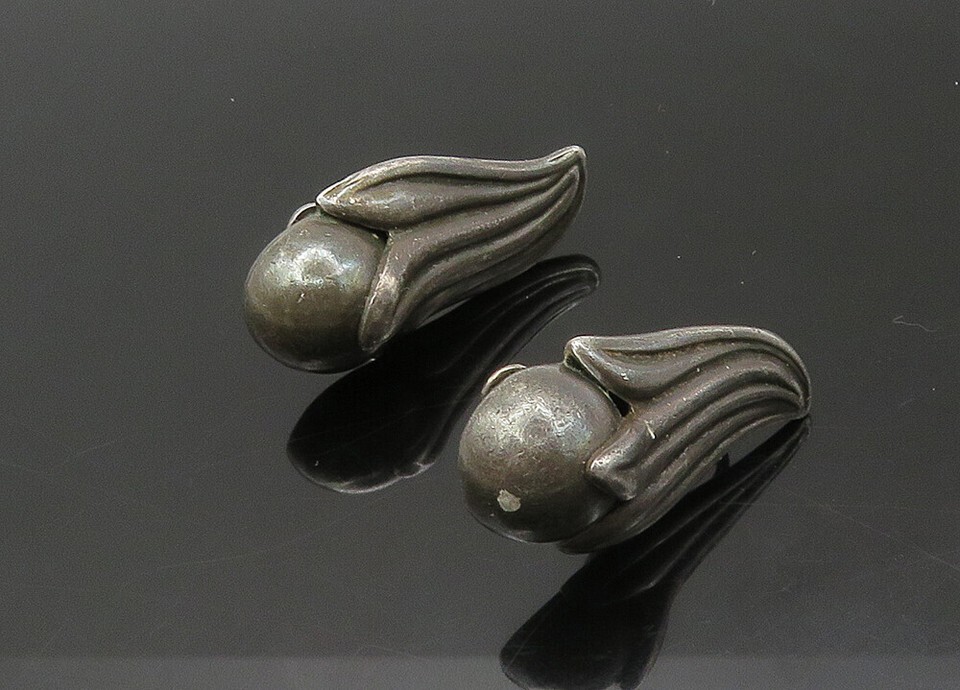 MEXICO 925 Silver Vintage Oxidized Floral Non Pierce Dangle Earrings EG10863