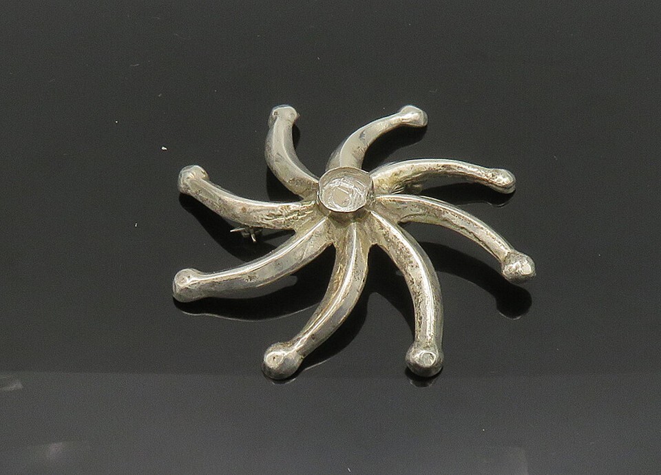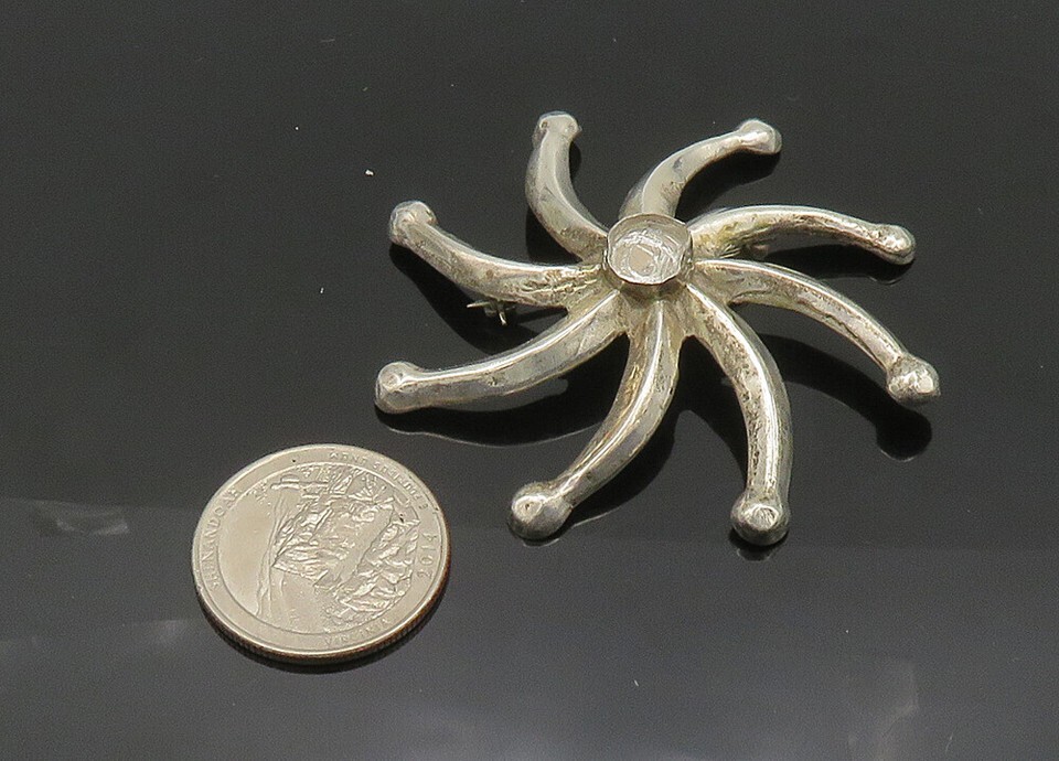NAVAJO 925 Sterling Silver Vintage Shiny Floral Motif Brooch Pin BP8194