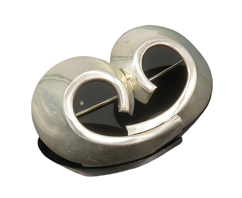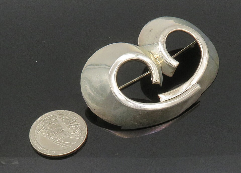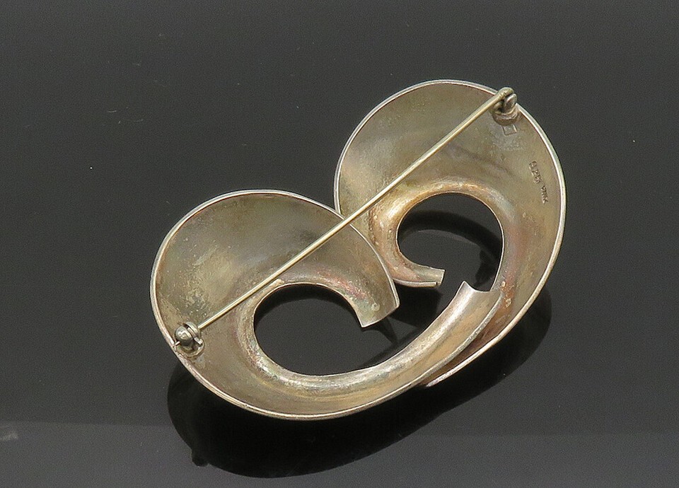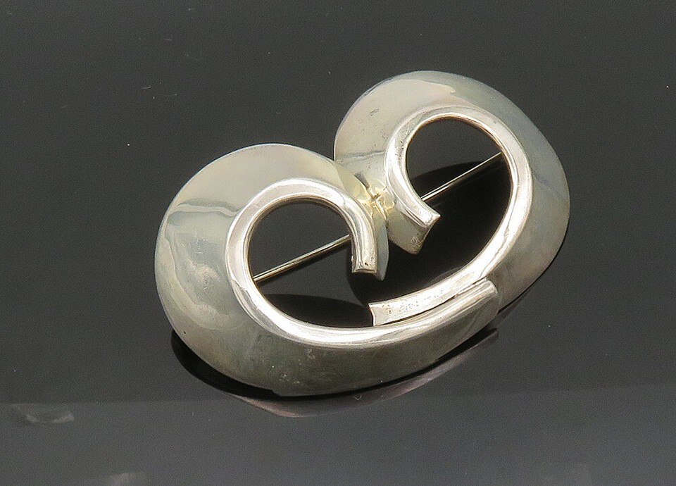ZINA 925 Sterling Silver Vintage Shiny Swirl Design Brooch Pin BP8197