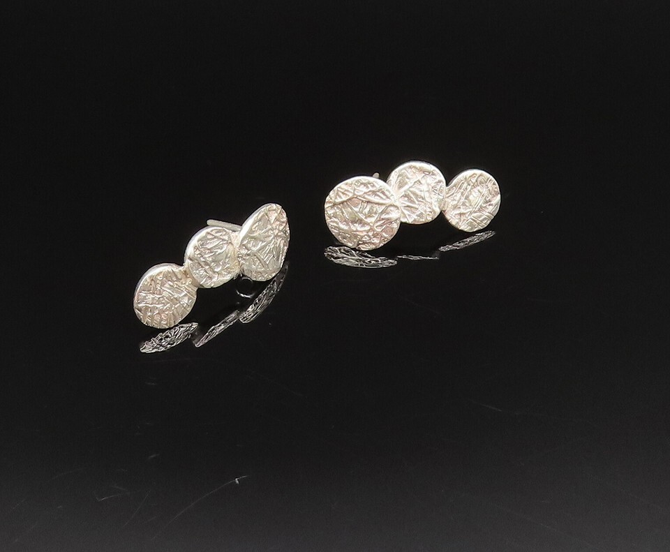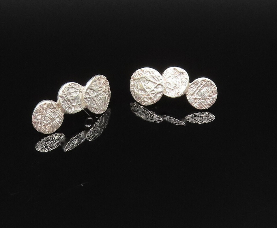 DESIGNER 925 Silver Vintage Modernist Carved Three Circle Earrings EG12017