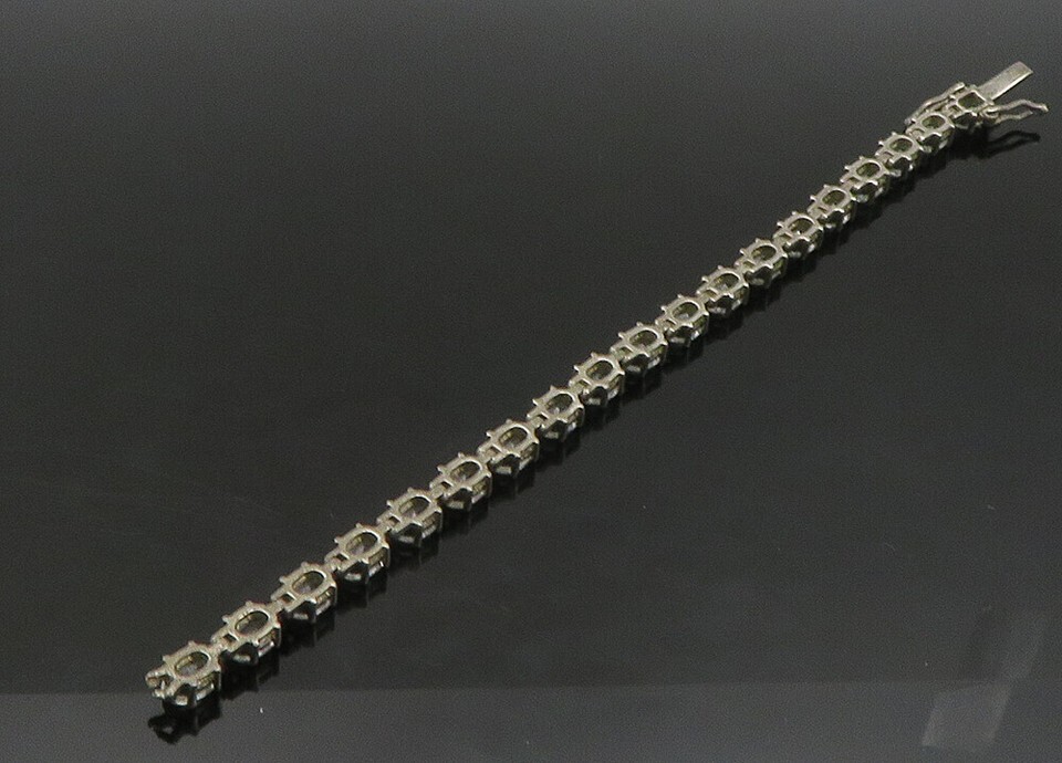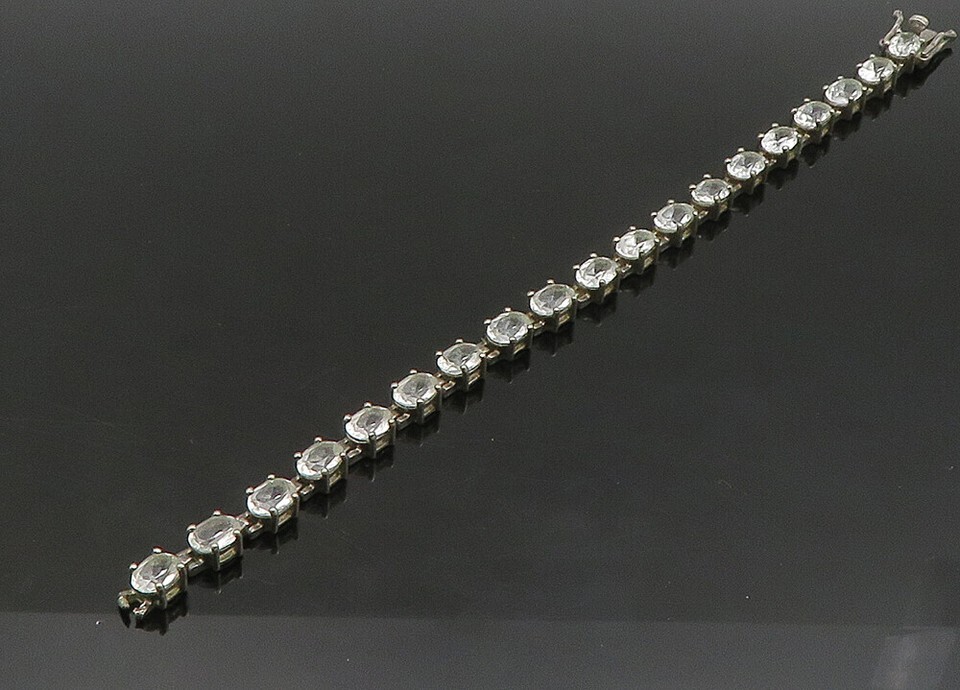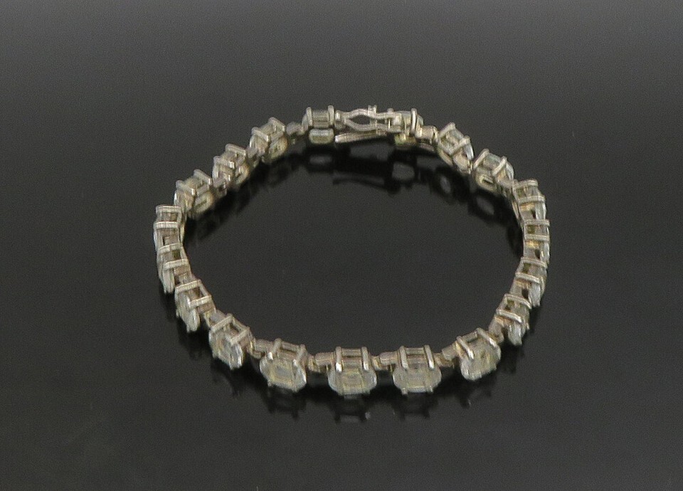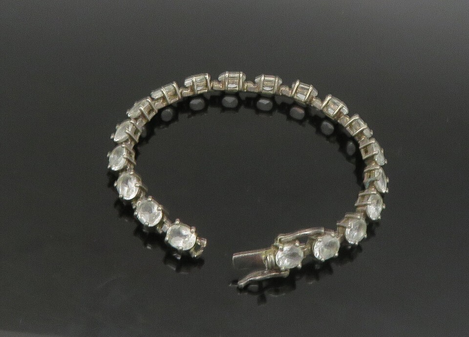 925 Sterling Silver Vintage Prong Set White Topaz Tennis Bracelet BT9084