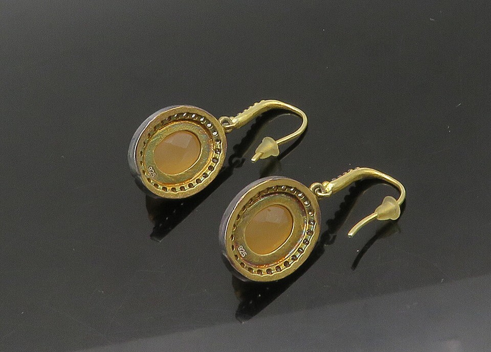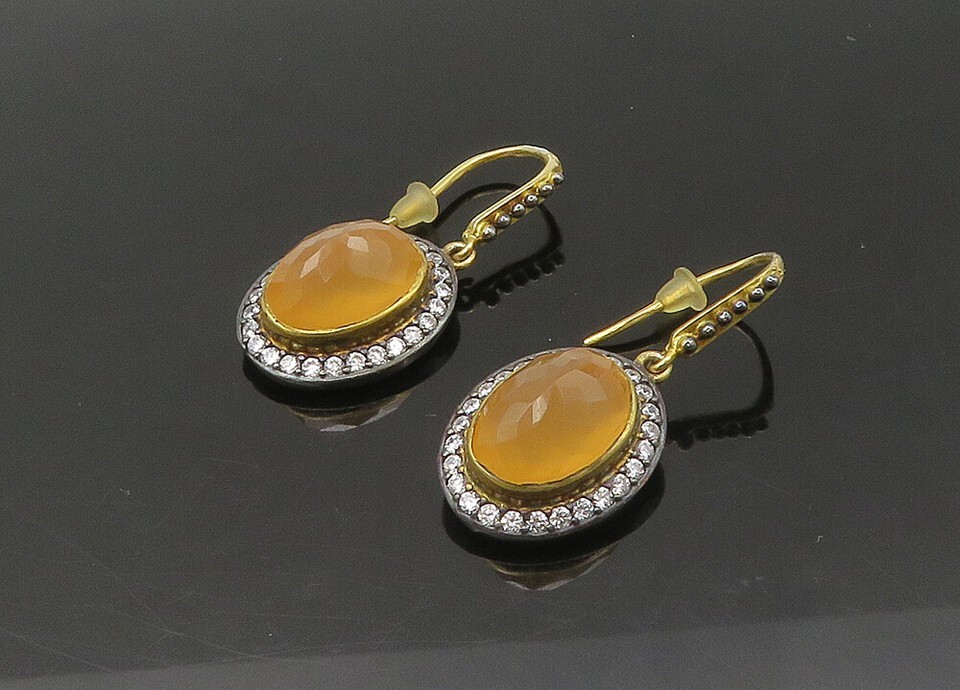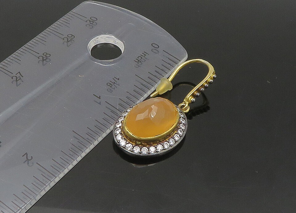 925 Silver Vintage Faceted Carnelian & Cubic Zirconia Drop Earrings EG10851