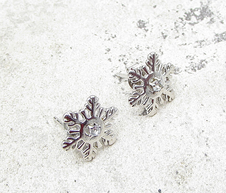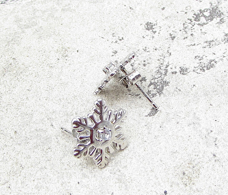 925 Sterling Silver White Cubic Zirconia Snowflake Stud Earrings EG1405