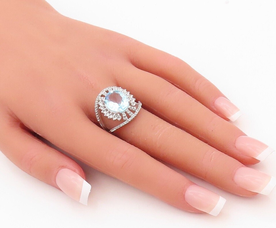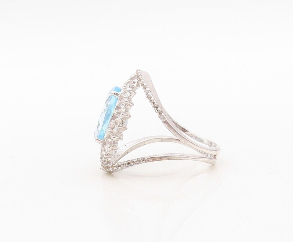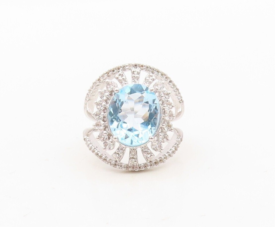 925 Sterling Silver Vintage Ring Floral 2 Tone Topaz Split Band Sz 7.5 RG30327