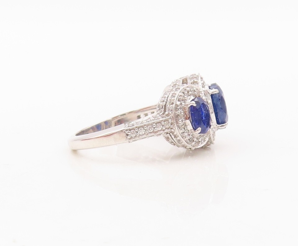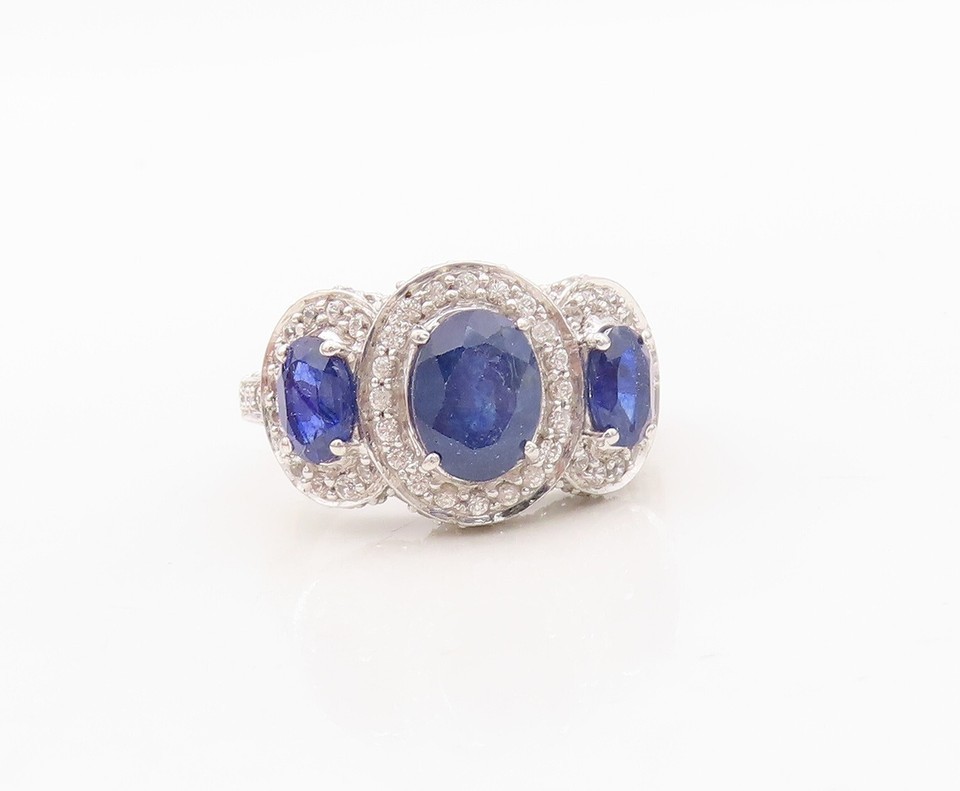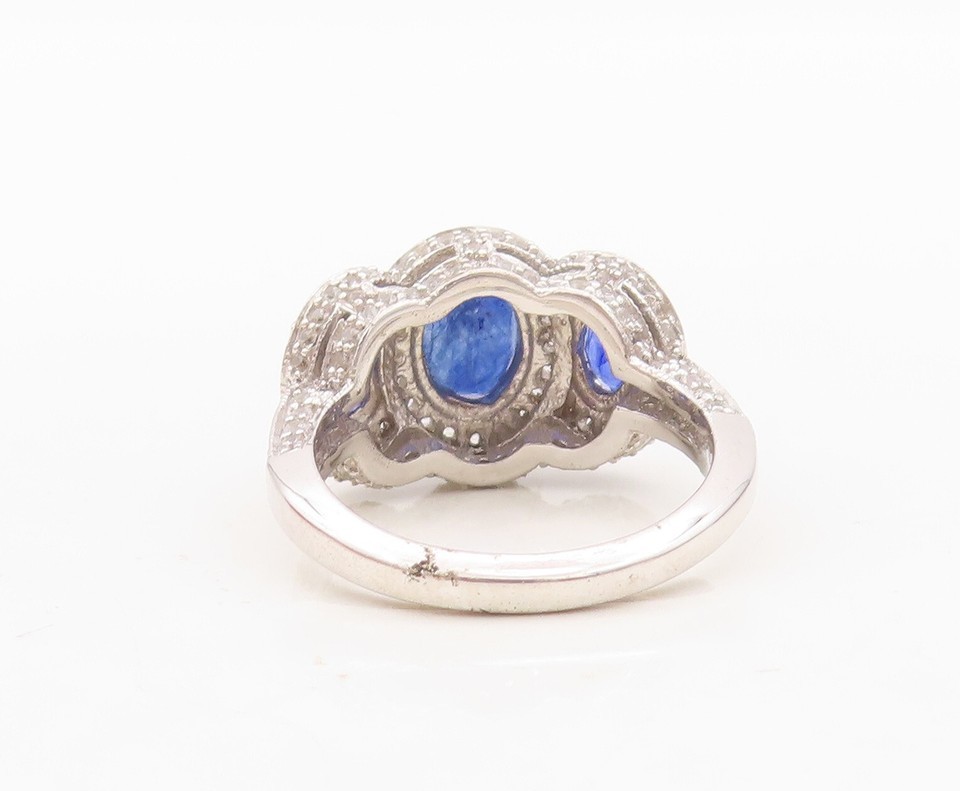 925 Sterling Silver Vintage Ring Oval Cut Sapphire Halo CZ Sz 7.5 RG30373