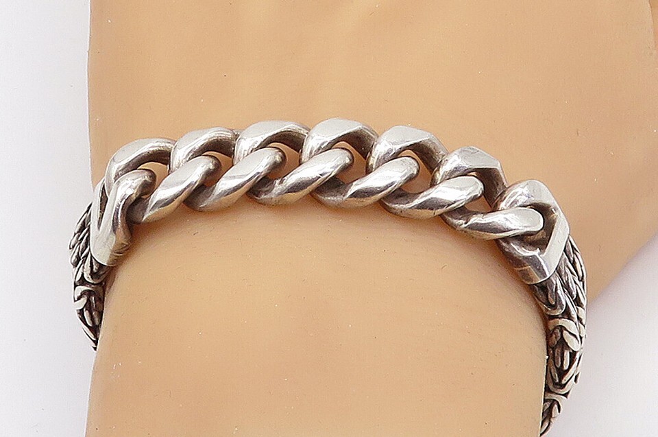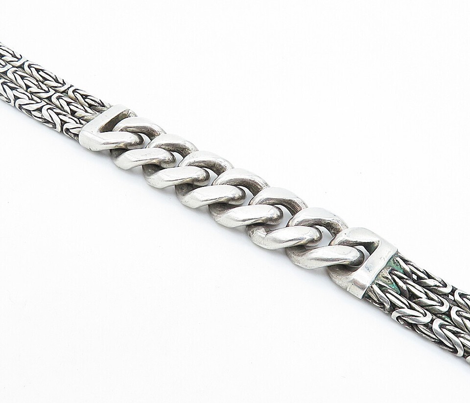 925 Sterling Silver Vintage Antique Byzantine Multi Strand Chain Bracelet BT2492