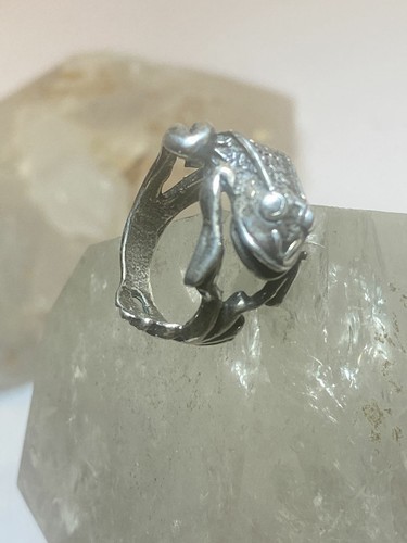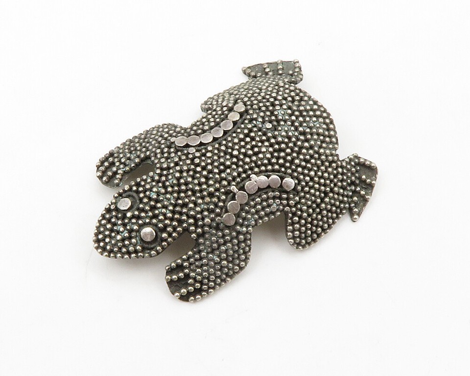 925 Sterling Silver Vintage Circle Pattern Frog Toad Motif Brooch Pin BP5235