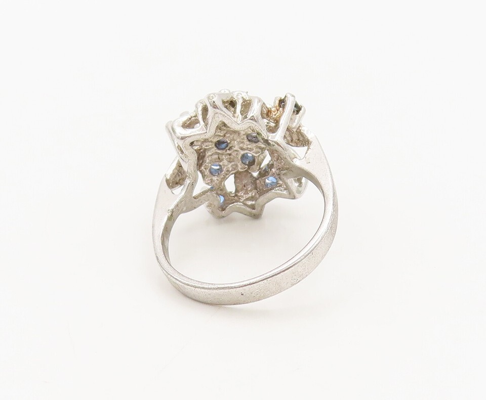 UNCAS 925 Silver Vintage Carved Blue Topaz Beaded Floral Ring Sz 6 RG27325