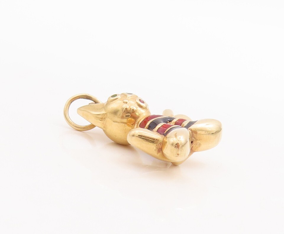 Authenticity Guarantee 18K GOLD Vintage Pendant Solid Mini 3D Enameled Carve...