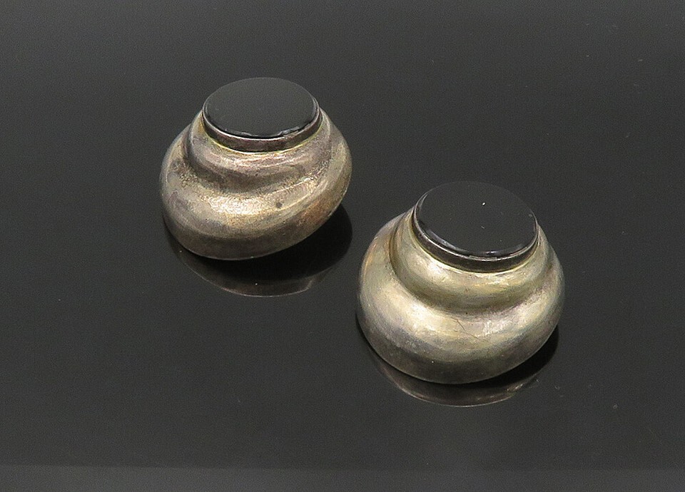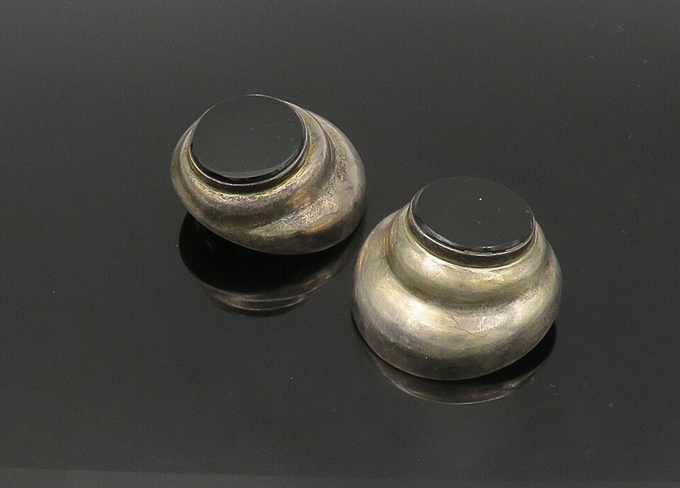 JRE MEXICO 925 Silver Vintage Black Onyx Hollow Non Pierce Earrings EG11154