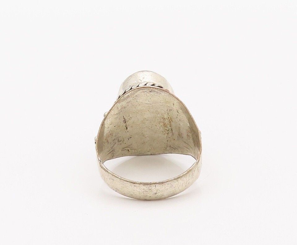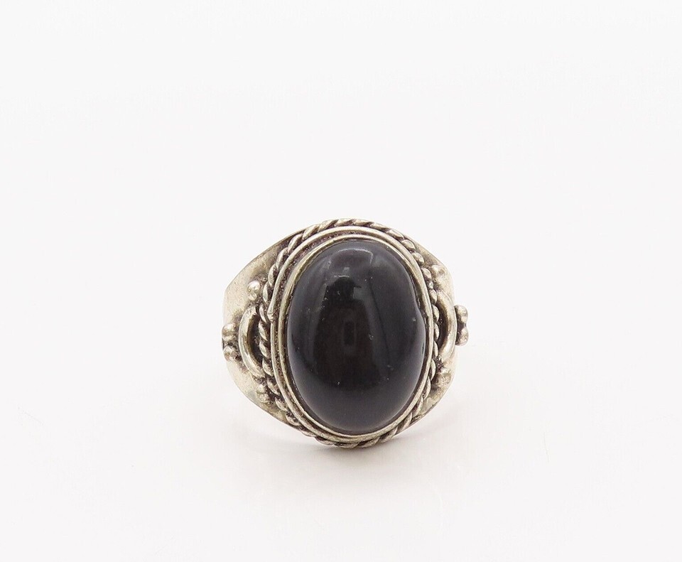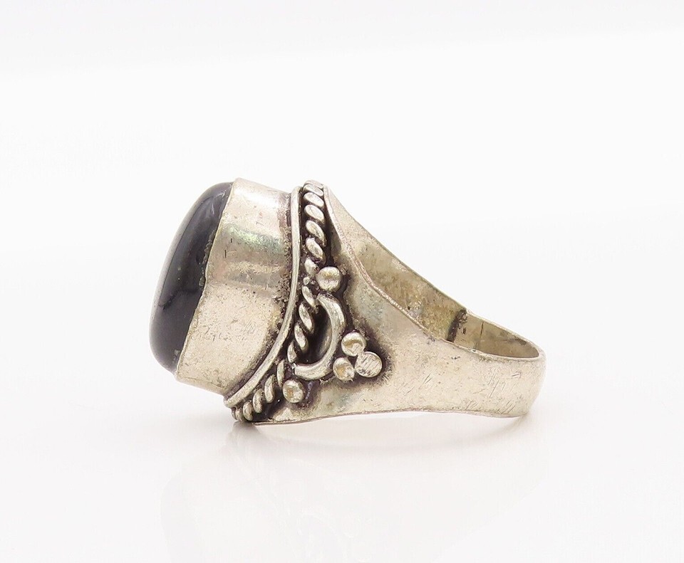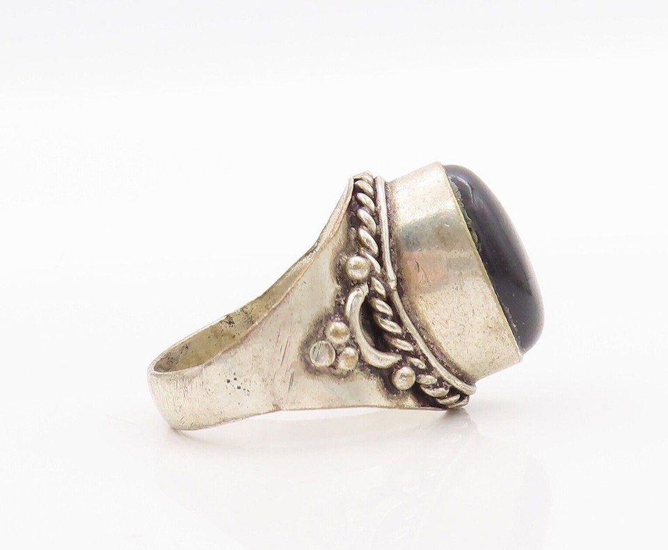 925 Sterling Silver Vintage Ring Roped Carved Oval Cabochon Onyx Sz 9.5 RG28249