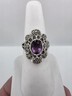 925 Sterling Silver Vintage Amethyst & Multi Row Marcasite Ring Sz 6.5 RG25558
