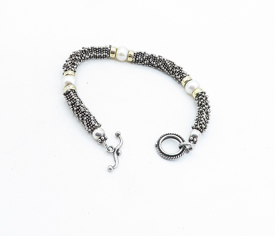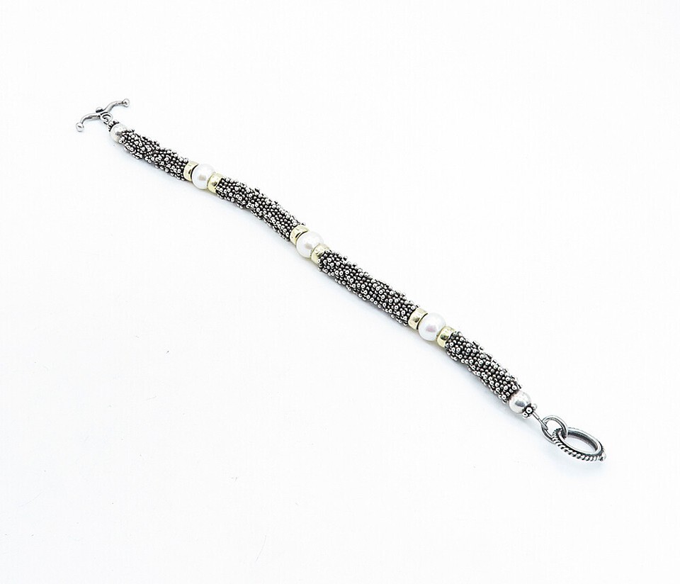 925 Sterling Silver & 14K GOLD Freshwater Pearls Beaded Chain Bracelet BT2624